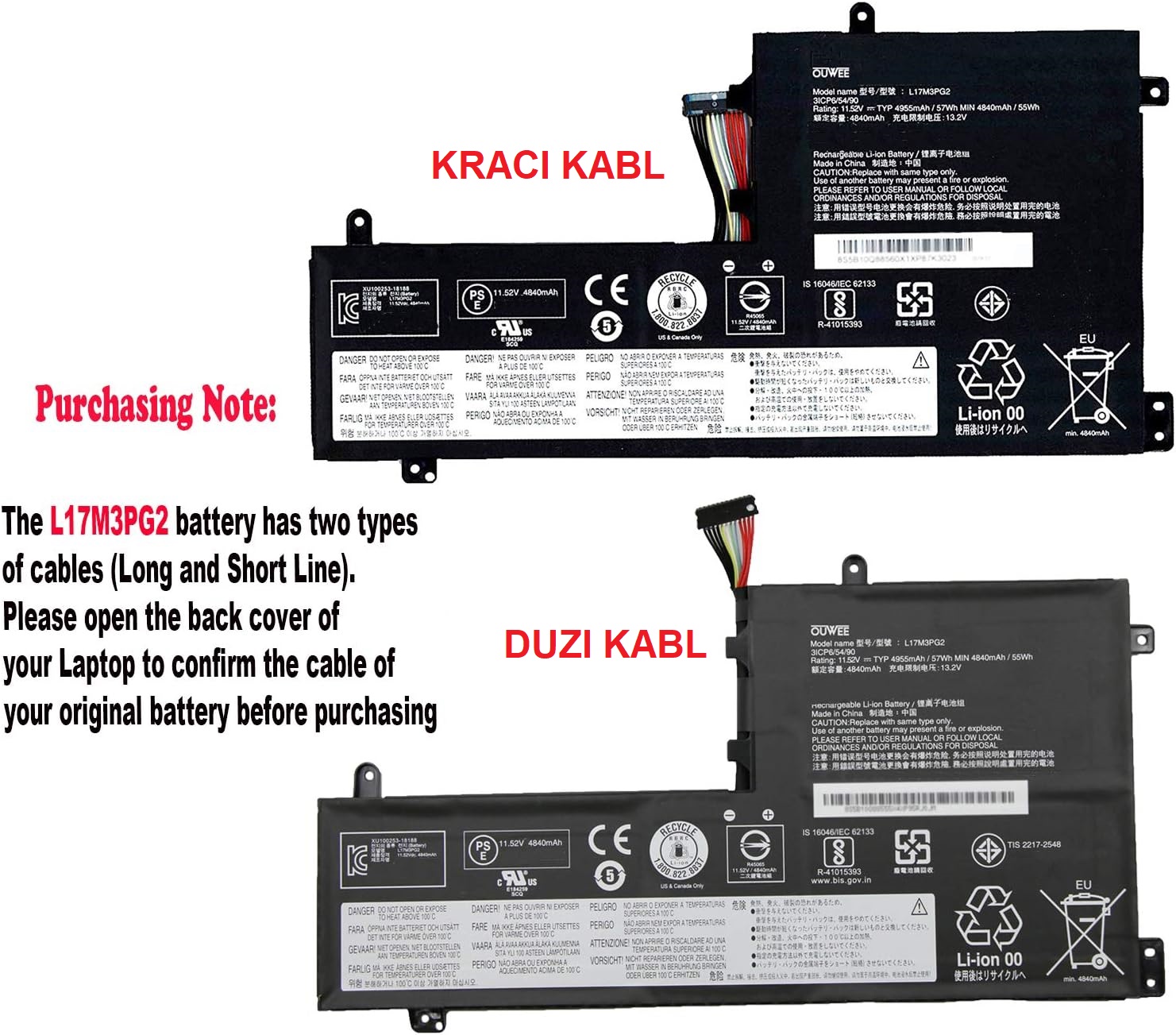 NAPOMENA: Baterija je sa duzim kablom (slika 2)